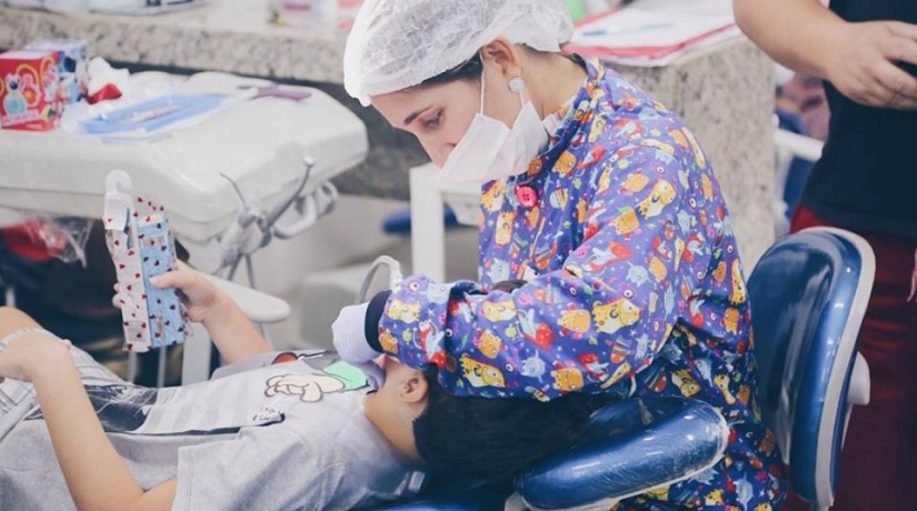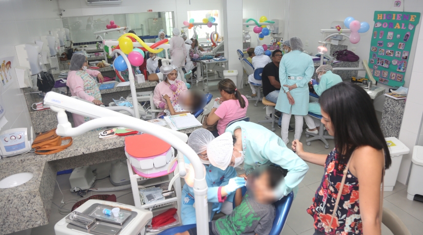 Muitas crianças em algum momento sentem aversão a clínica odontológica. Pensando nisso, nossa equipe de alunos e professores de Odontopediatria deixam a clínica com um jeitinho todo especial para os nossos pequeninos. Bichinhos de pelúcia, bolas de sopro, babadores impermeáveis e etc. Nossos dentistas também entram no mundo da criança com jalecos personalizados, coloridos e divertidos, trazendo seu conhecimento, carinho e atenção.
